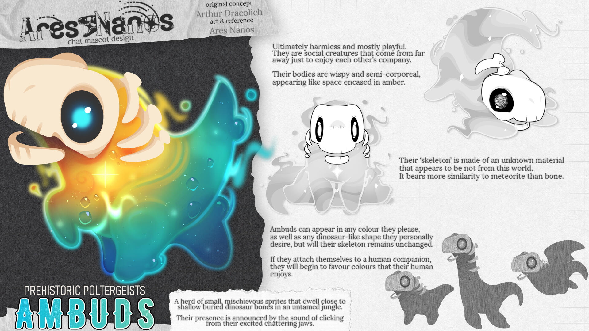 Whether you just follow along, lurk and watch, or actively partake in the chat, you are represented by an Ambud!These sparkly, colourful little ghosts are playful and social and, like me, harbour the souls of long dead dinos. Fun!Have you created an Ambud of your own? Let me know so I can share them here!!!